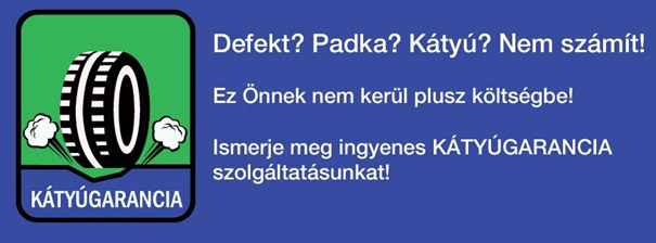 Ezen túlmenően a Point S Magyarország Kft. biztosítja a vásárlóinknak a KÁTYÚGARANCIÁT a hálózatban értékesített egyes személy és 4x4 abroncsra, ami nem a gyártási hibákból eredő károkra is érvényes. Olyan károkra, amelyek nem a rendeltetésszerű használat közben keletkeztek, hanem helytelen vezetői magatartás miatt következtek be.