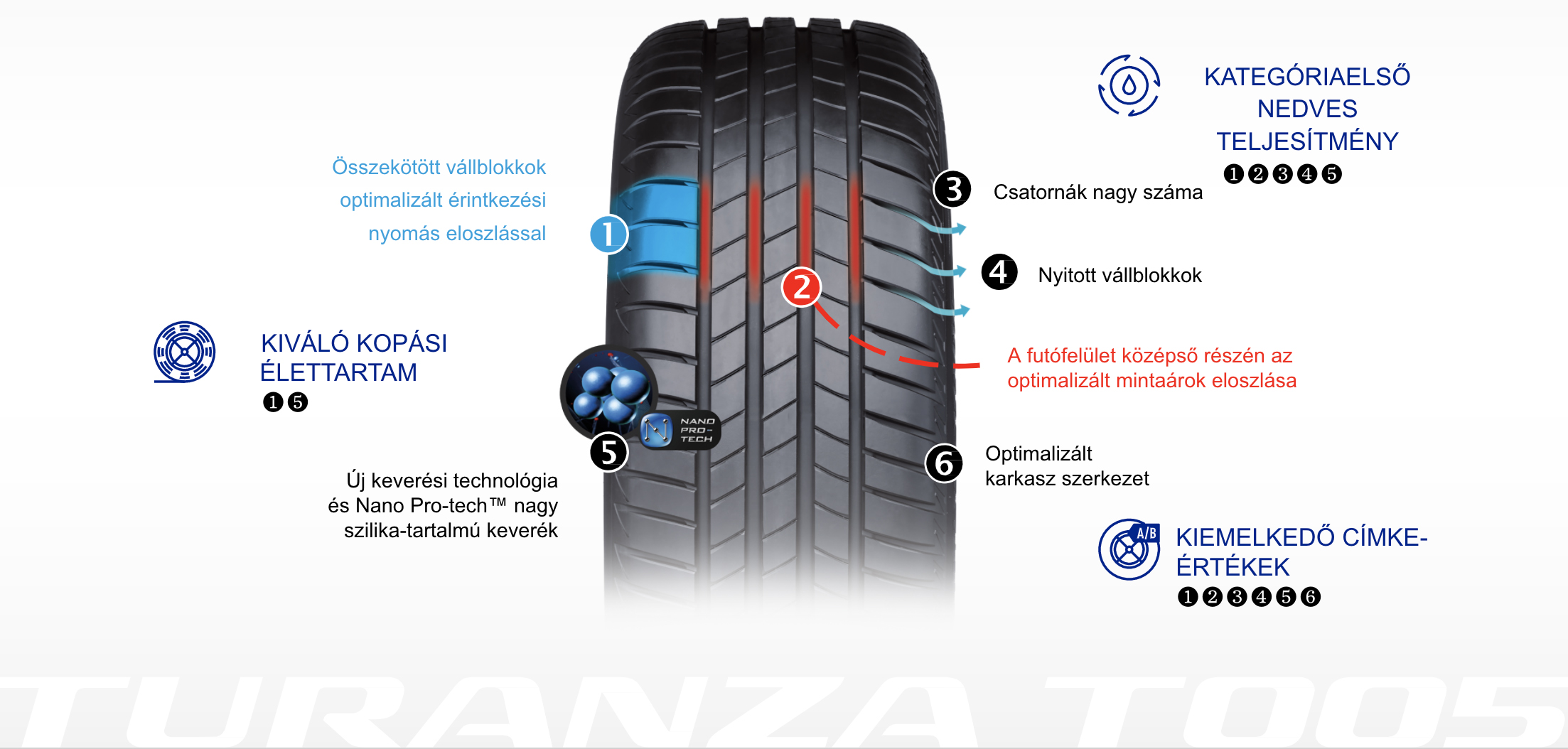 Az Európában fejlesztett és gyártott Bridgestone Turanza T005 abroncs nedves útfelületen is kiváló teljesítményt, hatékony üzemanyag-felhasználást és hosszú élettartamot nyújt, a kihívást jelentő mindennapi vezetési helyzetekben pedig biztosítja a jármű teljes irányíthatóságát a járművezetők számára, még esős napokon is.